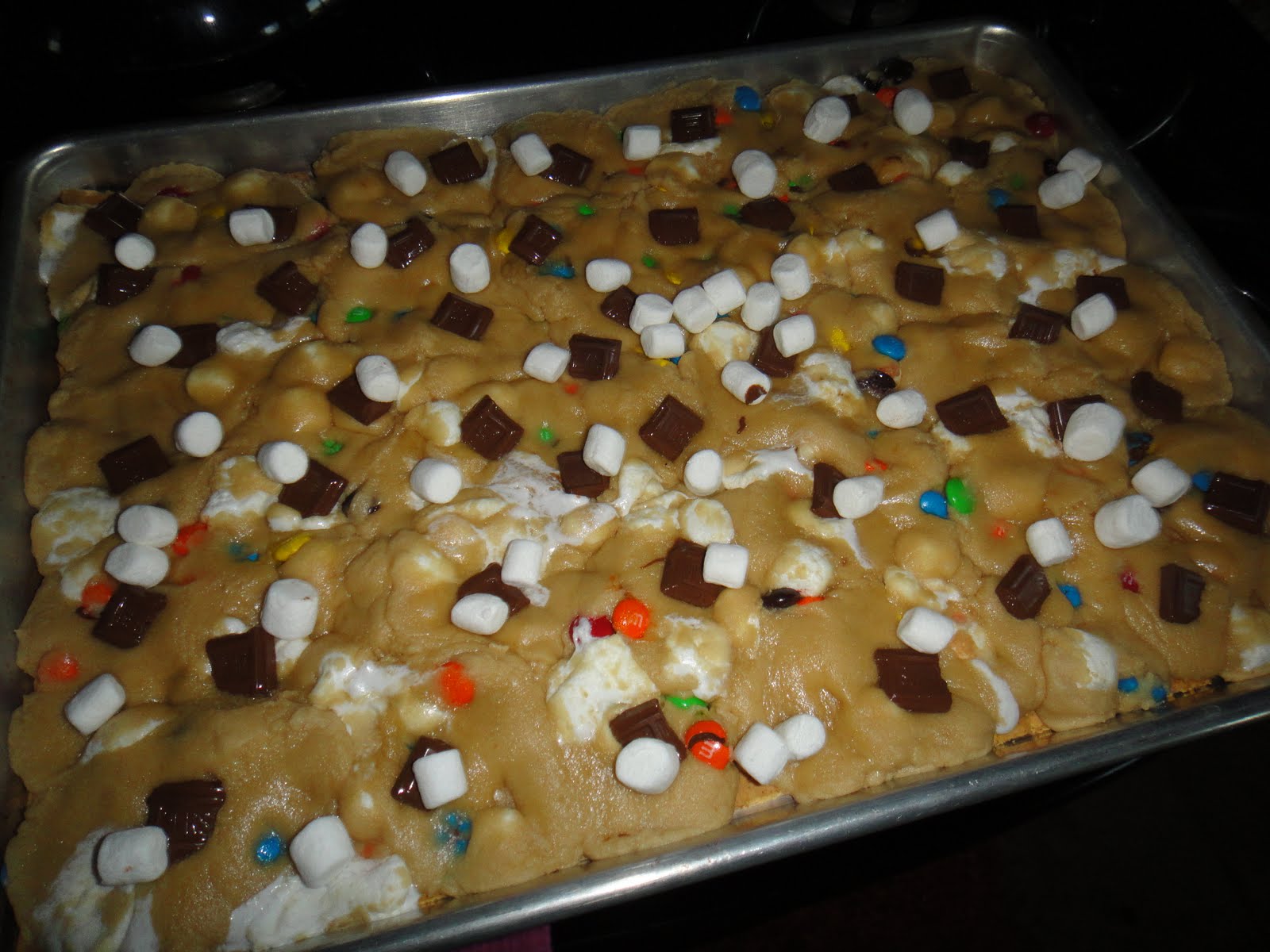 Add a handful of mini marshmallows and Hershey bar squares & bake until golden brown (approximately 12 more minutes) ...