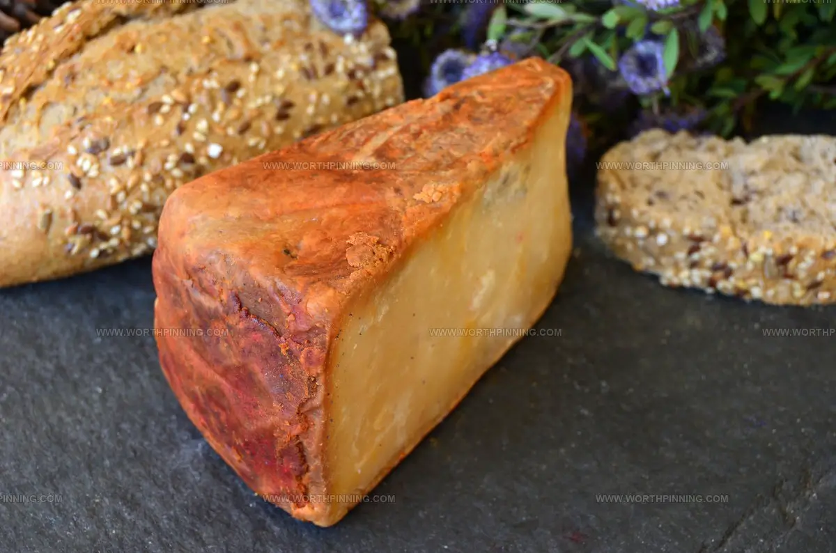 Hand-molded and wrapped in cotton cloth, the cheese matures for 21 to 150 days, developing an intense flavor profile.