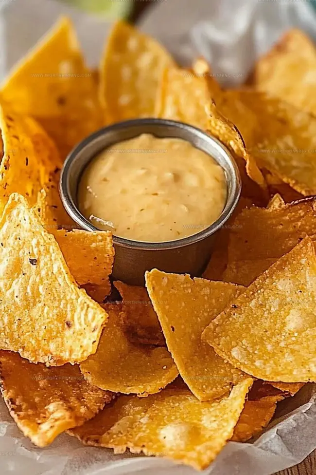 Dips: Salsa, guacamole, queso, or sour cream complement these homemade chips perfectly, great for snacking or entertaining.