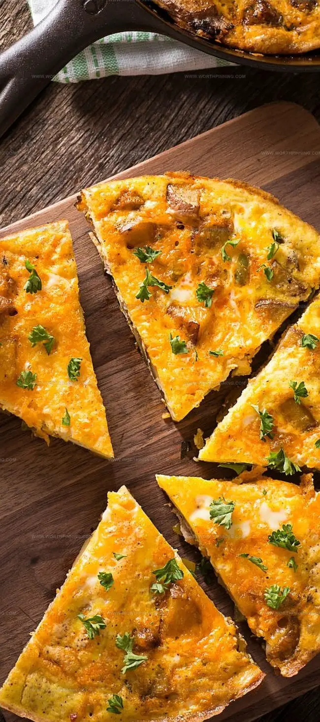 - Remove the frittata from the oven, sprinkle with fresh chopped parsley for added flavor and visual appeal.