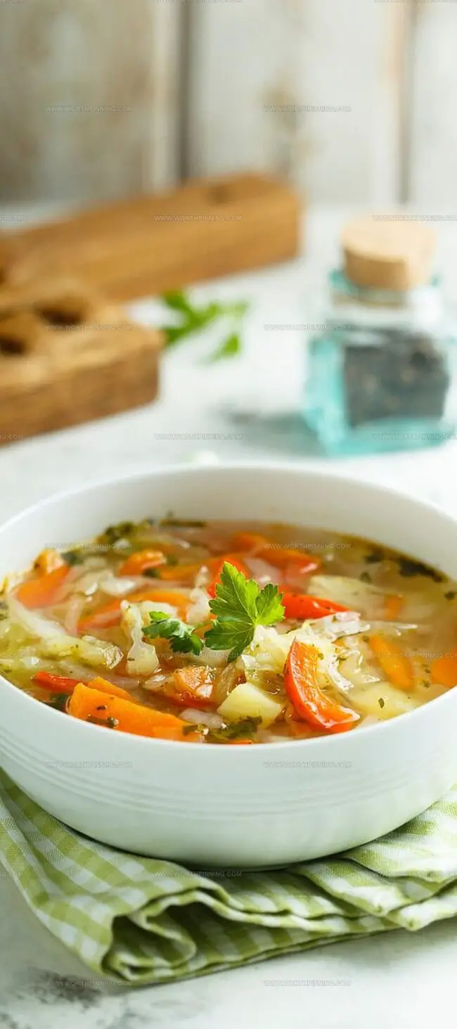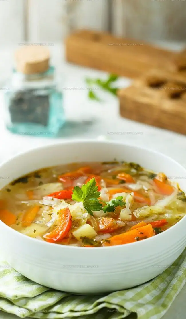 Garden vegetable soup captures the essence of seasonal bounty with its vibrant medley of fresh ingredients.