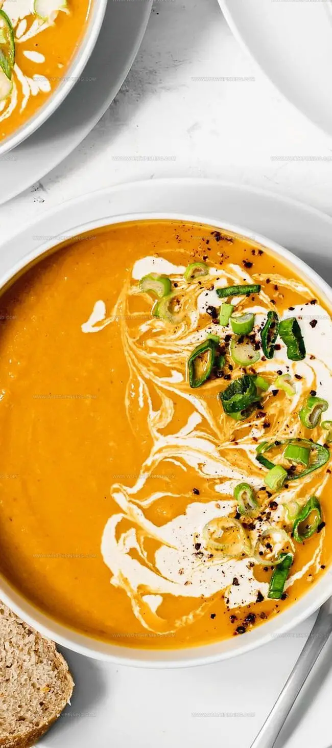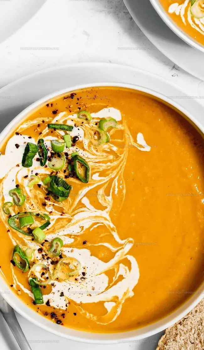 Squash: A sweet, versatile vegetable that forms the base of the soup, best when fresh and firm with a deep orange color.