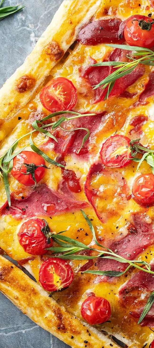 Culinary magic unfolds with Alton Brown’s tomato tart, a symphonic blend of caramelized onions, golden pastry, and sun-kissed tomatoes.