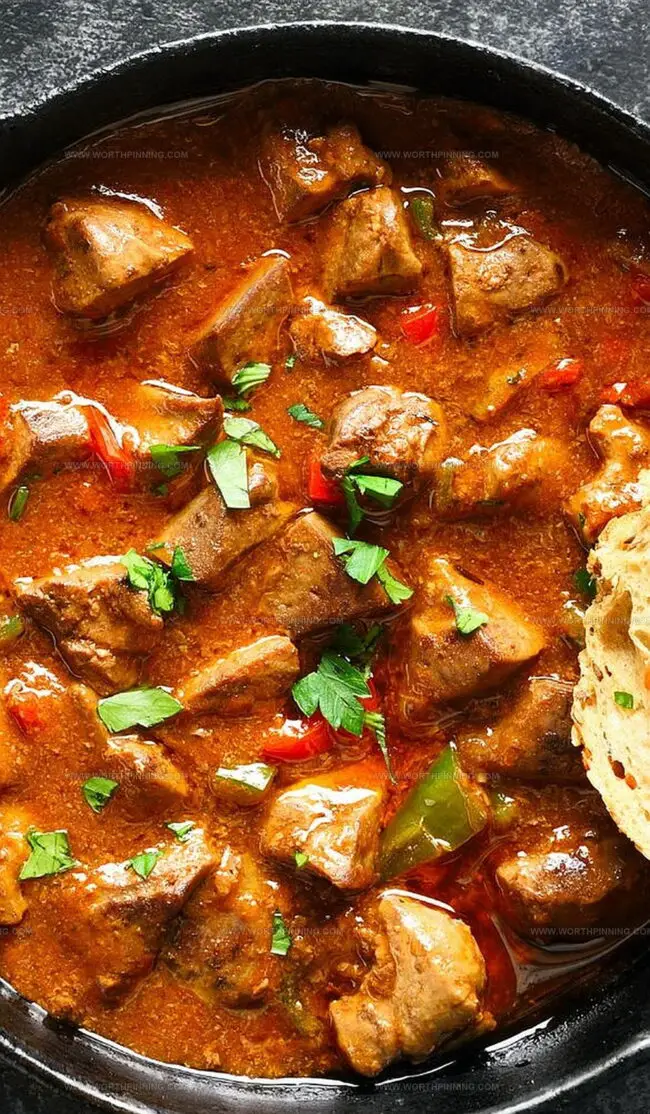 Serving Presentation: Remove the skillet from heat, transferring the aromatic liver stew into a pre-warmed serving dish. Complement the dish with freshly baked bread or steamed rice for a complete, satisfying meal.