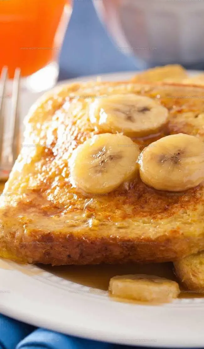 Top the warm French toast with the luscious banana foster sauce, creating a mouthwatering breakfast masterpiece.