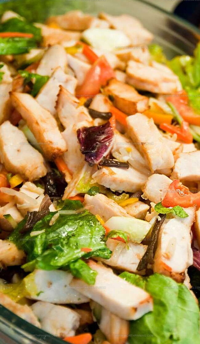 Bobby Flay’s Chinese Chicken Salad delivers a zesty fusion of crisp vegetables and tender grilled chicken. Crunchy cabbage, fragrant herbs, and a tangy sesame dressing create a perfect balance that will transport you to flavor paradise.