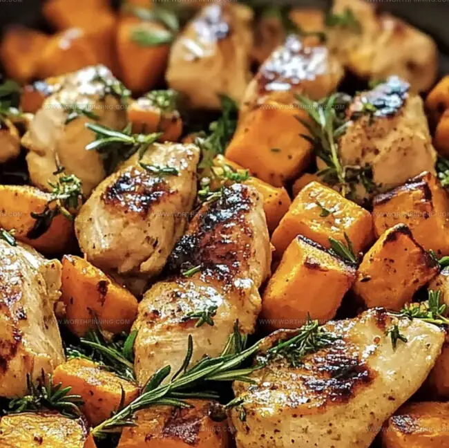 Hearty chicken and sweet potato skillet delivers pure comfort on a plate, blending savory protein with caramelized root vegetables. Rustic flavors meld together, creating a simple yet satisfying meal that will transport you straight to a countryside kitchen.