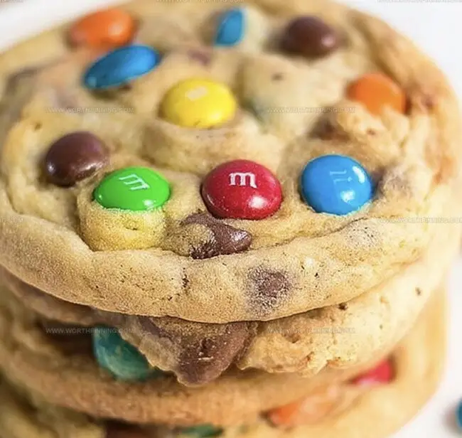 - Artfully place additional M&Ms on cookie surfaces for visual appeal and enhanced chocolate presence.