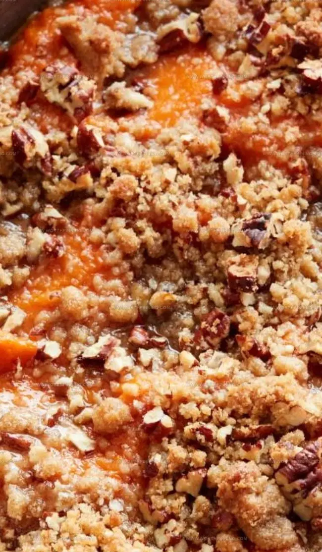 Scatter the pecan crumble across the potato base, making sure it’s evenly distributed. Slide the casserole into a preheated oven and bake until the top turns a gorgeous golden brown and the center sets perfectly. Pull out this bubbling masterpiece and serve while it’s warm, ready to melt hearts and tantalize taste buds.