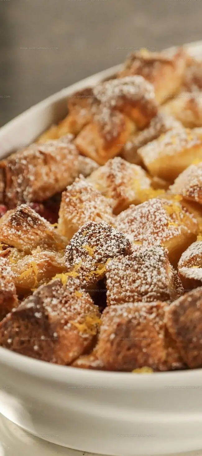 Dust the casserole with powdered sugar and a sprinkle of fresh orange zest. Serve with a pitcher of maple syrup on the side, inviting everyone to indulge in this breakfast masterpiece.