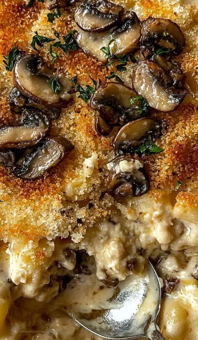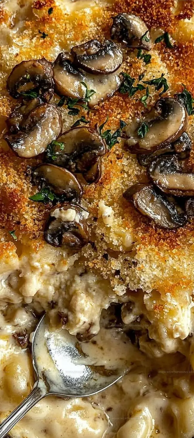 - Pasta and Mushroom Integration: Fold cooked pasta into the cheese sauce, mixing in two-thirds of the prepared mushrooms. Transfer the creamy mixture to a 10 × 13 × 2-inch baking dish.