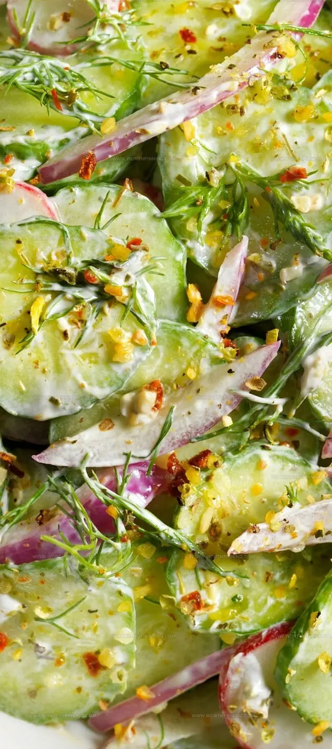 Minimize Watery Texture: Pat cucumbers thoroughly dry after salting to prevent excess liquid from diluting the creamy dressing. This technique ensures a rich, thick consistency that holds up well during storage.