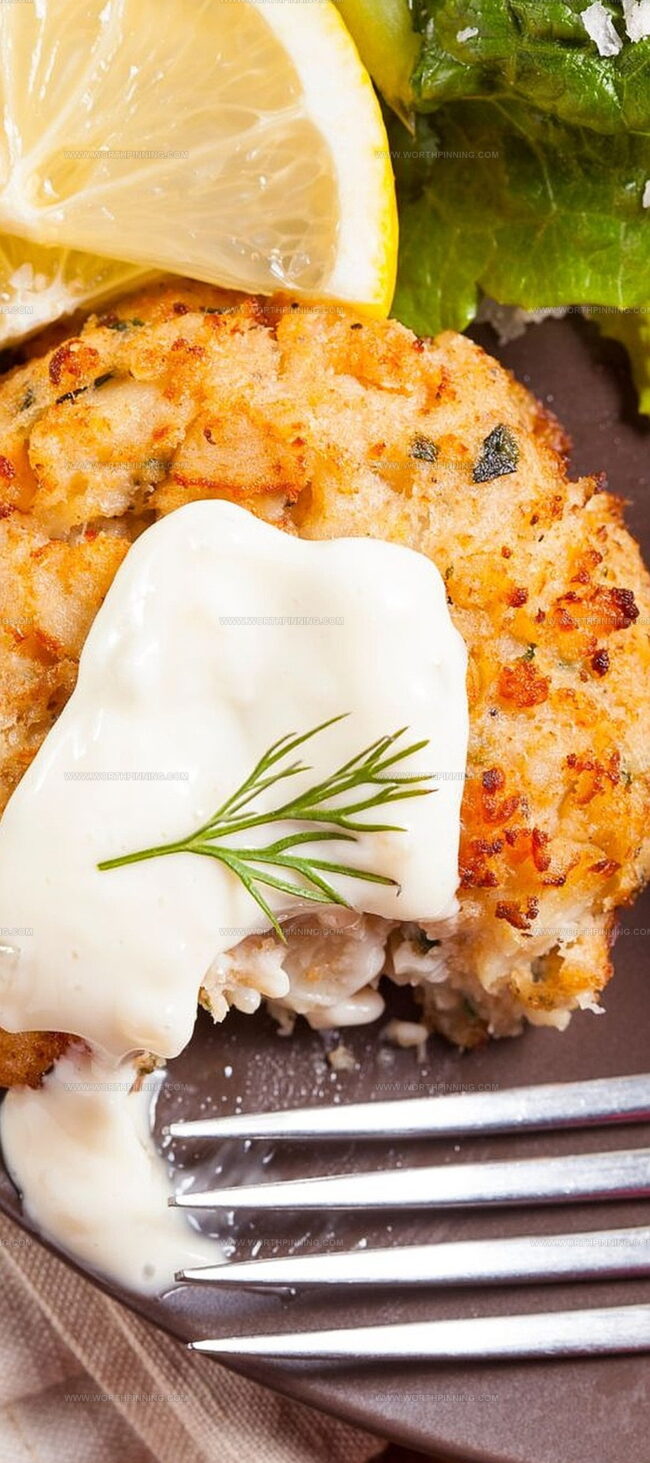 - Serving: Present golden crab cakes hot, accompanied by the chilled remoulade sauce for a delightful culinary experience.