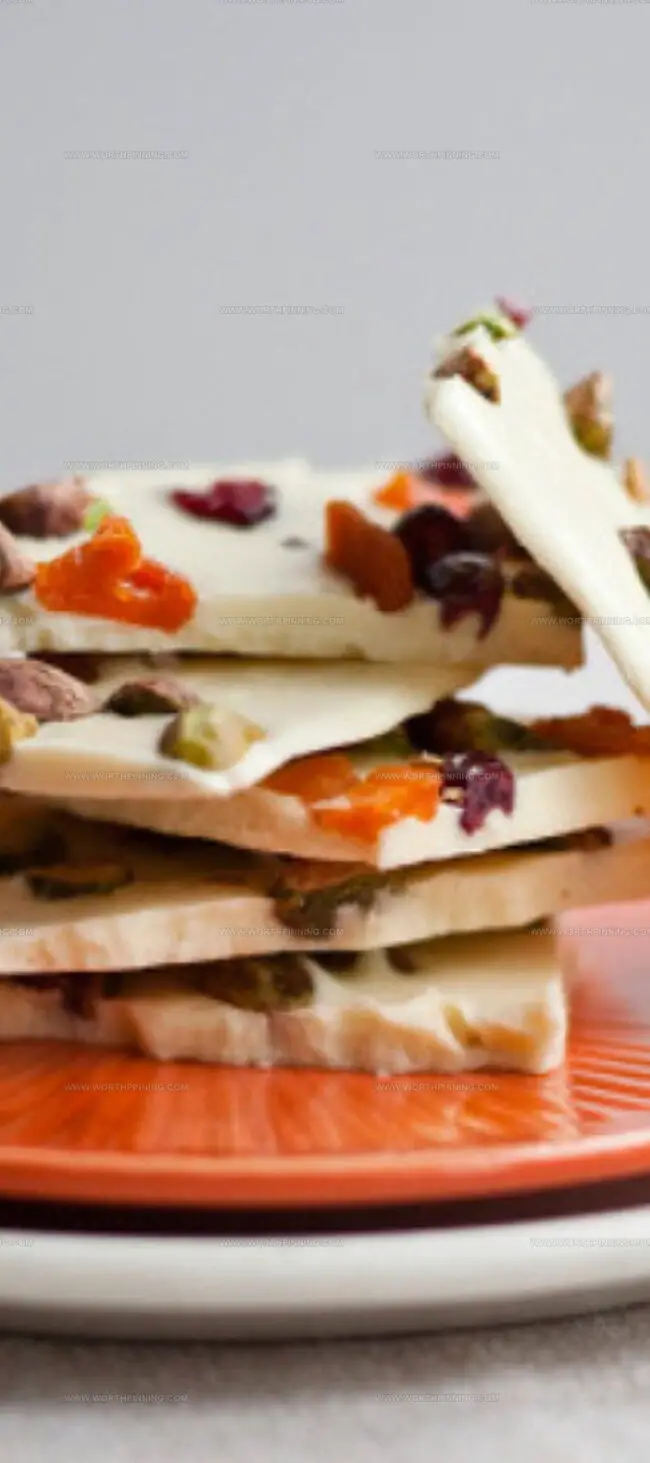 Create a Festive Dessert Display: Arrange the white chocolate bark pieces on a decorative platter, creating an elegant and inviting presentation that showcases the colorful toppings.