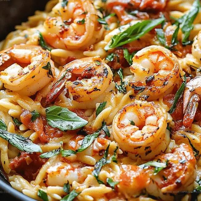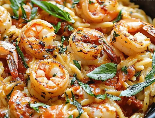 Delicate shrimp are perfectly complemented by the soft, rice-like texture of orzo pasta, creating a balanced and nutritious meal.