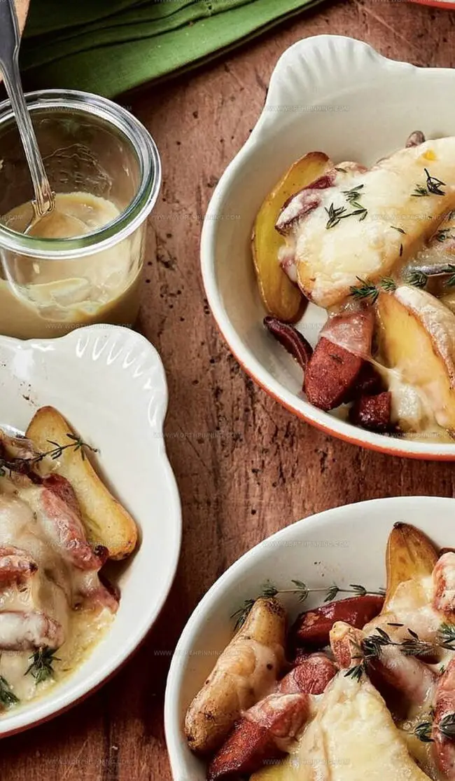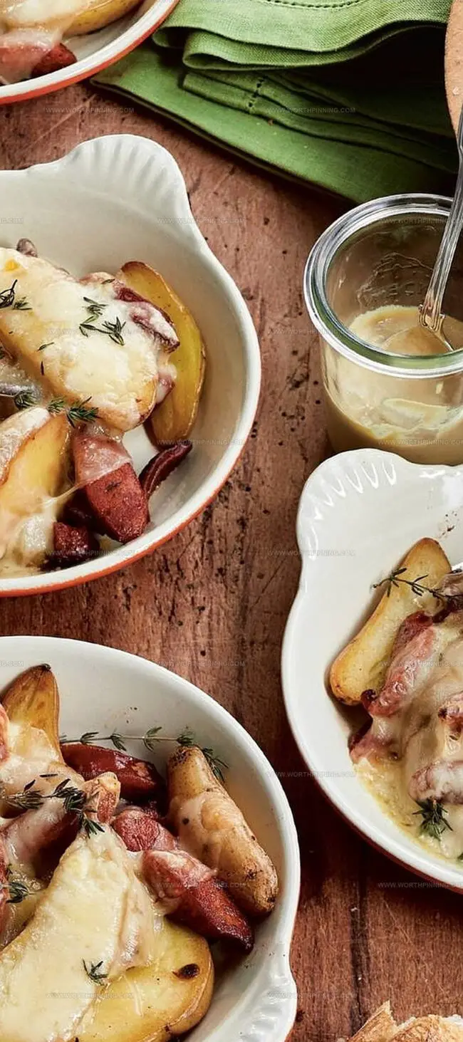 - Assembling Gratin: Distribute chorizo-potato mixture evenly across four gratin dishes. Layer raclette cheese generously over the base. Strategically place thyme sprigs for aromatic complexity.