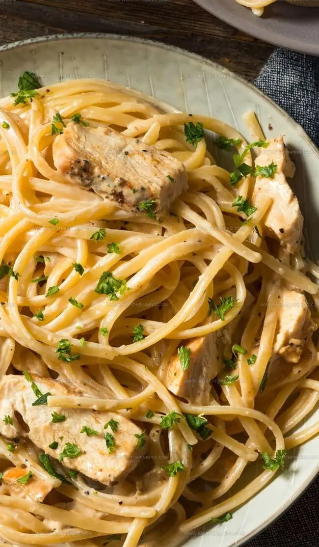 - Plating and Finishing: Arrange pasta on plates, top with sliced chicken. Optionally garnish with fresh parsley, additional Parmesan, and cracked black pepper for an elevated presentation.