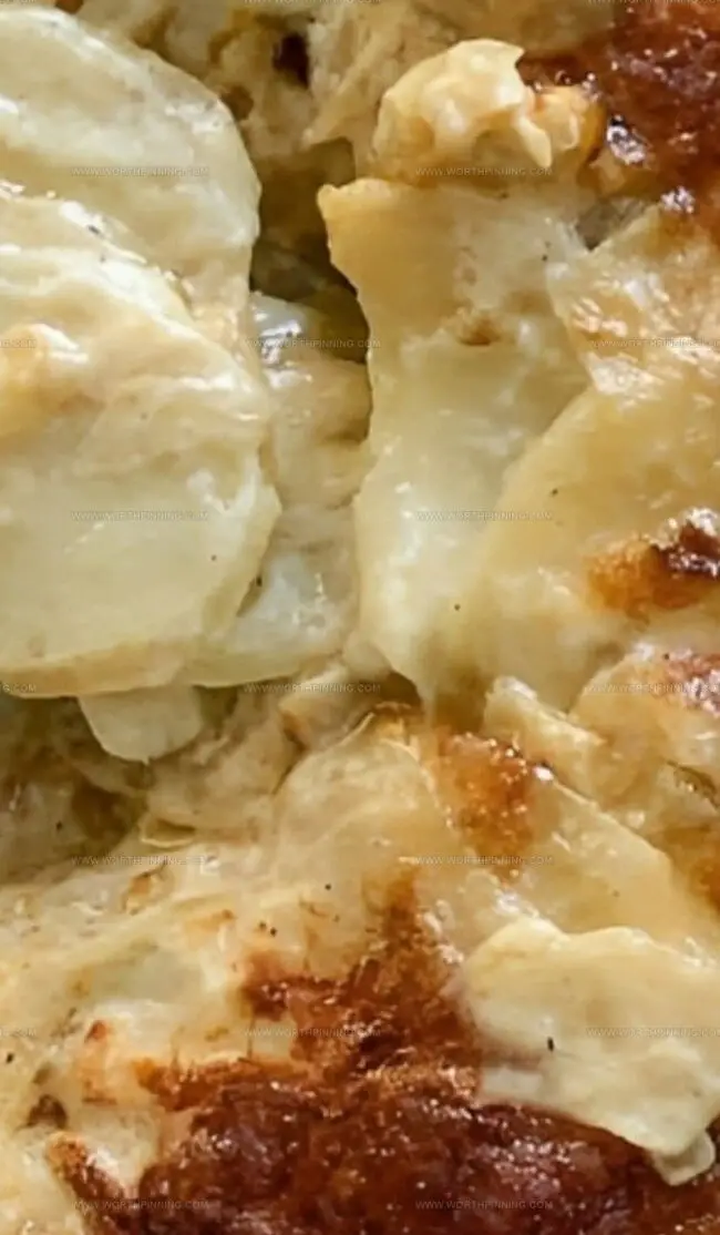 Layers of golden, creamy potatoes meld together in a dance of delectable textures that whisper stories of traditional kitchens.