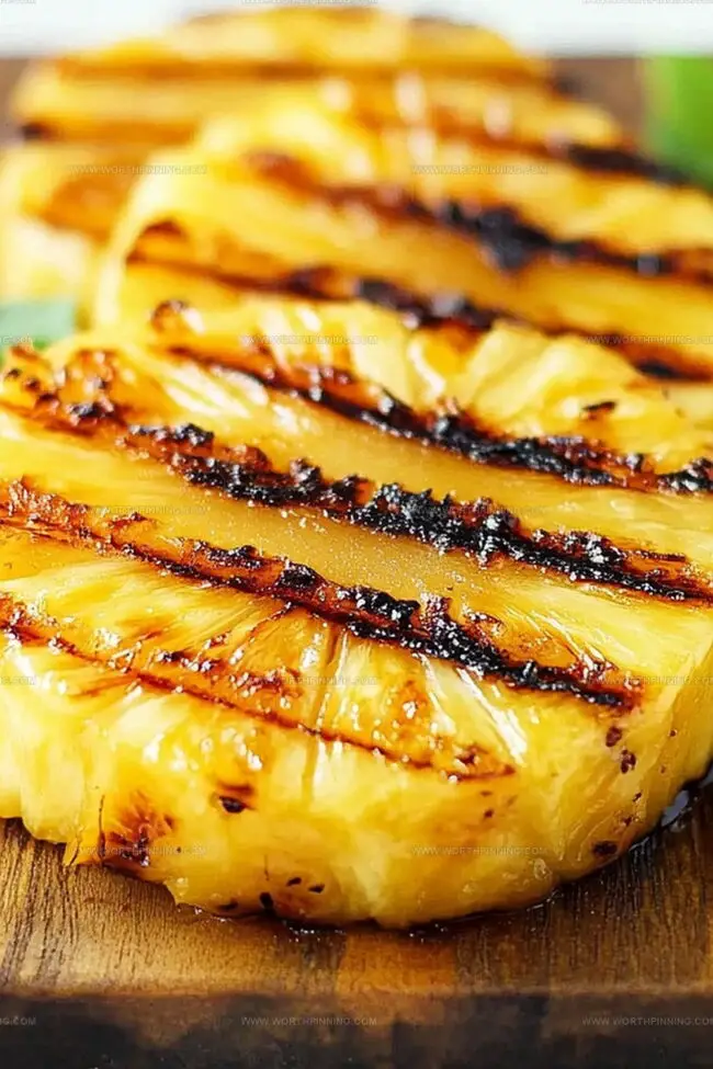 Transfer grilled pineapple to a serving platter. For an extra flavor explosion, consider these optional finishing touches:Serve immediately while warm and enjoy the tropical sensation.