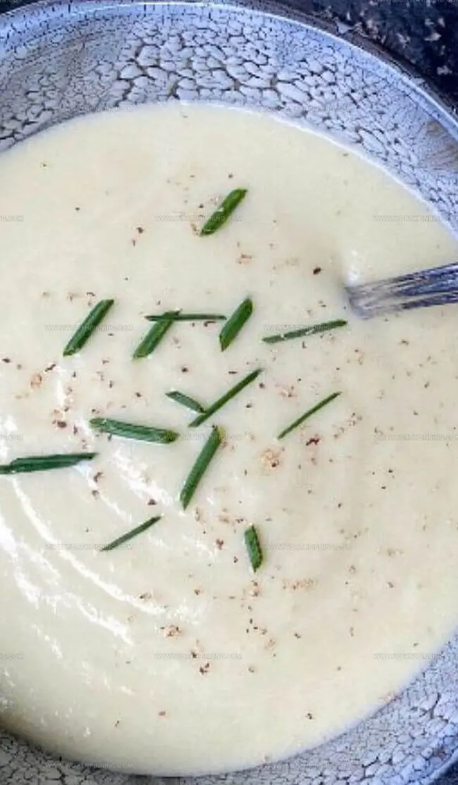 Stir in a splash of cream and a touch of buttermilk to add luxurious richness. Season with white pepper and taste, adjusting flavors as needed. Garnish with a sprinkle of freshly chopped chives to add a bright, crisp finish that cuts through the soup’s creamy depth.