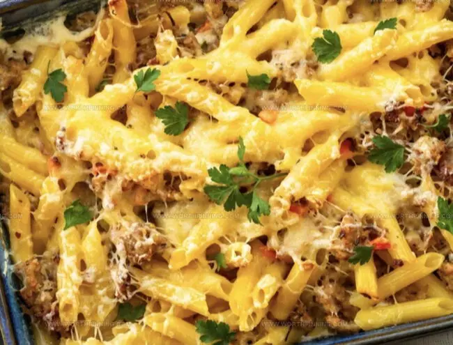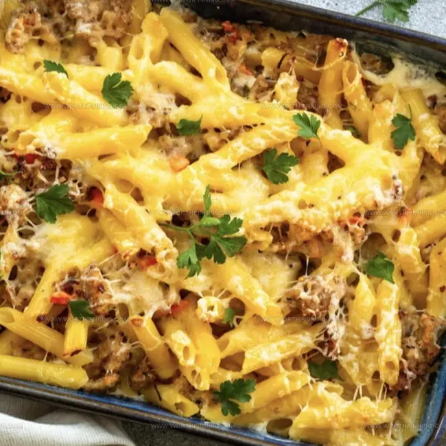 One forkful, and you’ll understand why this pasta bake isn’t just a meal, it’s a celebration of deliciousness waiting to be devoured.