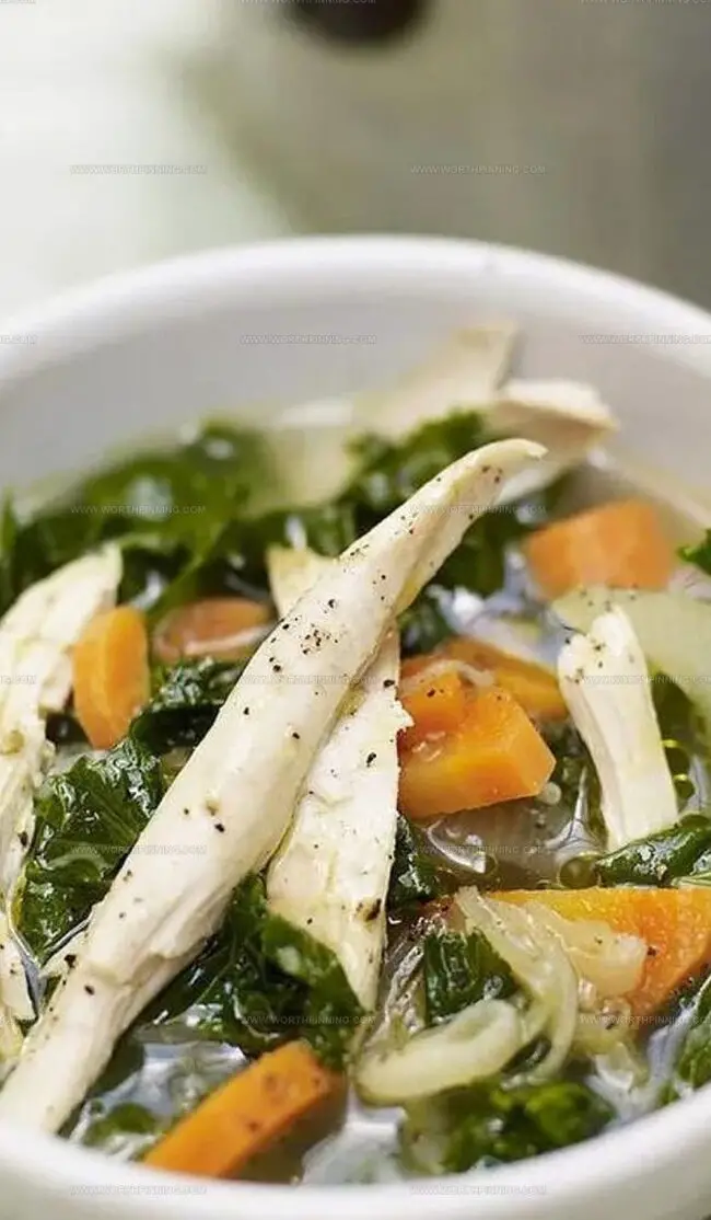 Introduce seasonal greens to the pot, letting them dance in the hot broth. In the last moments, swirl in some spinach for a burst of fresh color and nutrition. Brighten the entire dish with a squeeze of lemon juice, and taste to perfect the seasoning. Ladle the steaming soup into warm bowls, crowning each serving with shredded chicken and a sprinkle of fresh parsley.