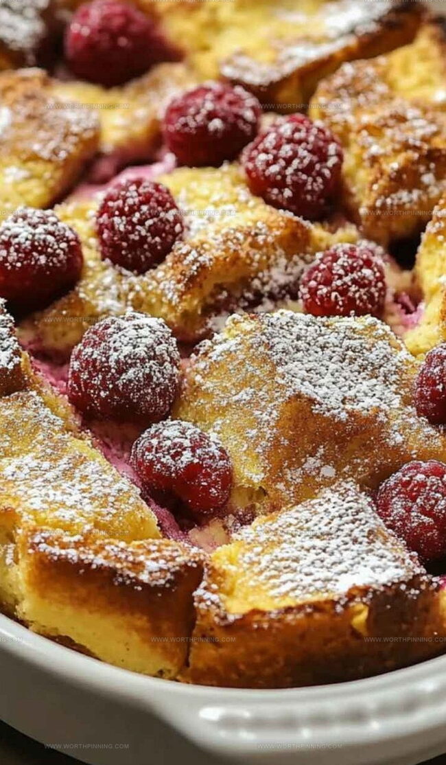 Layers of soft bread, sweet raspberries, and rich custard create a decadent morning treat that feels like pure indulgence.