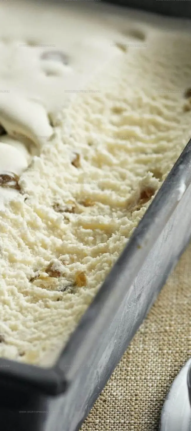 - Boost Rum Flavor: Reserve the rum liquid from soaking raisins to intensify the ice cream’s complex, boozy undertones.