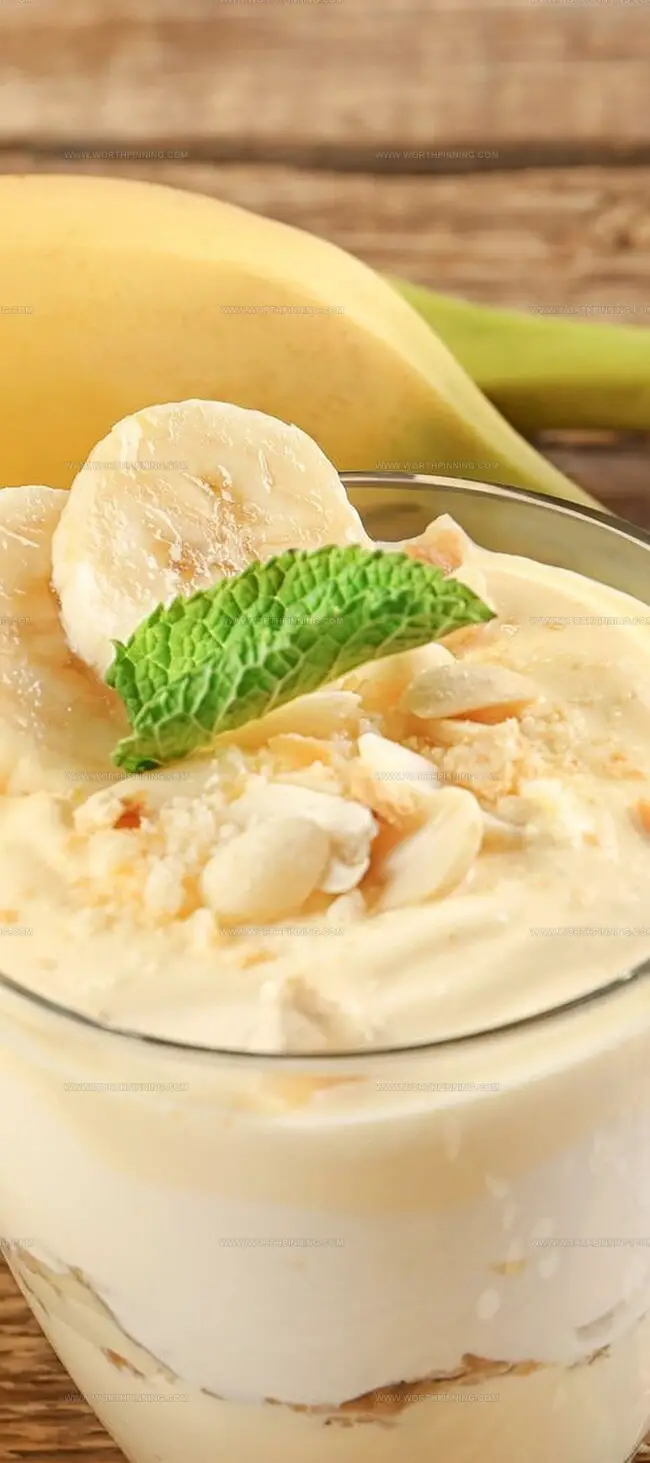 Silky pudding, ripe bananas, and crisp wafers create delightful texture contrasts.