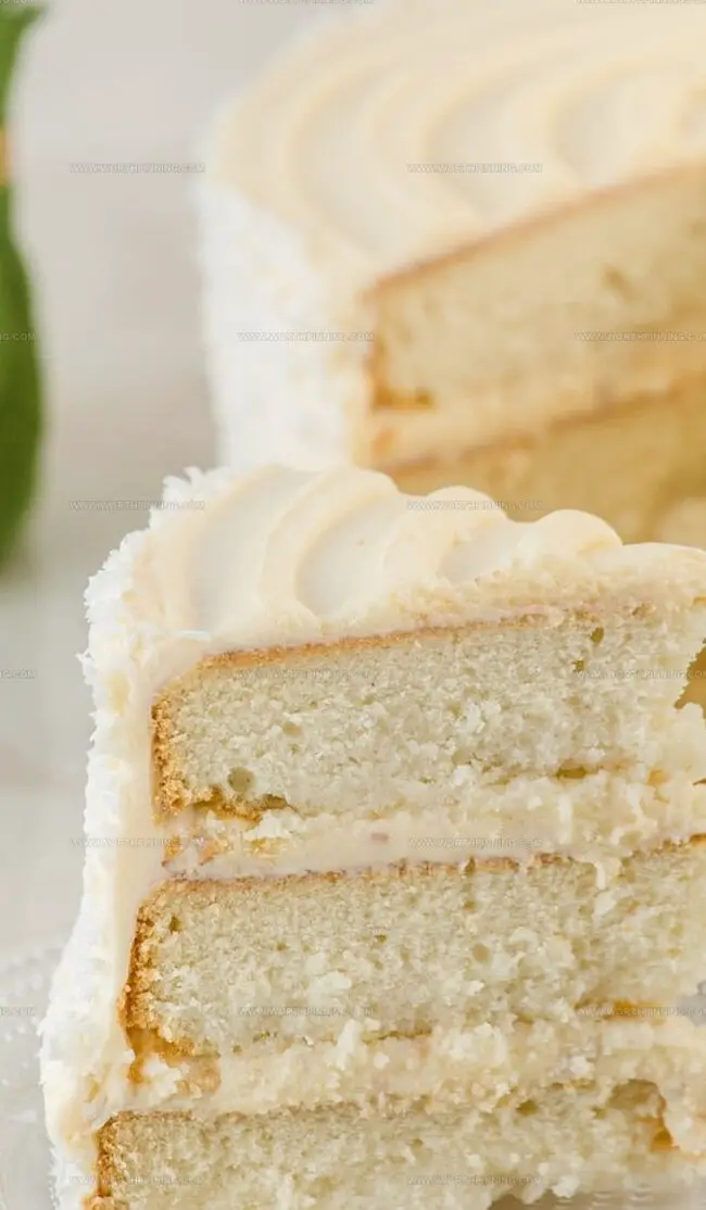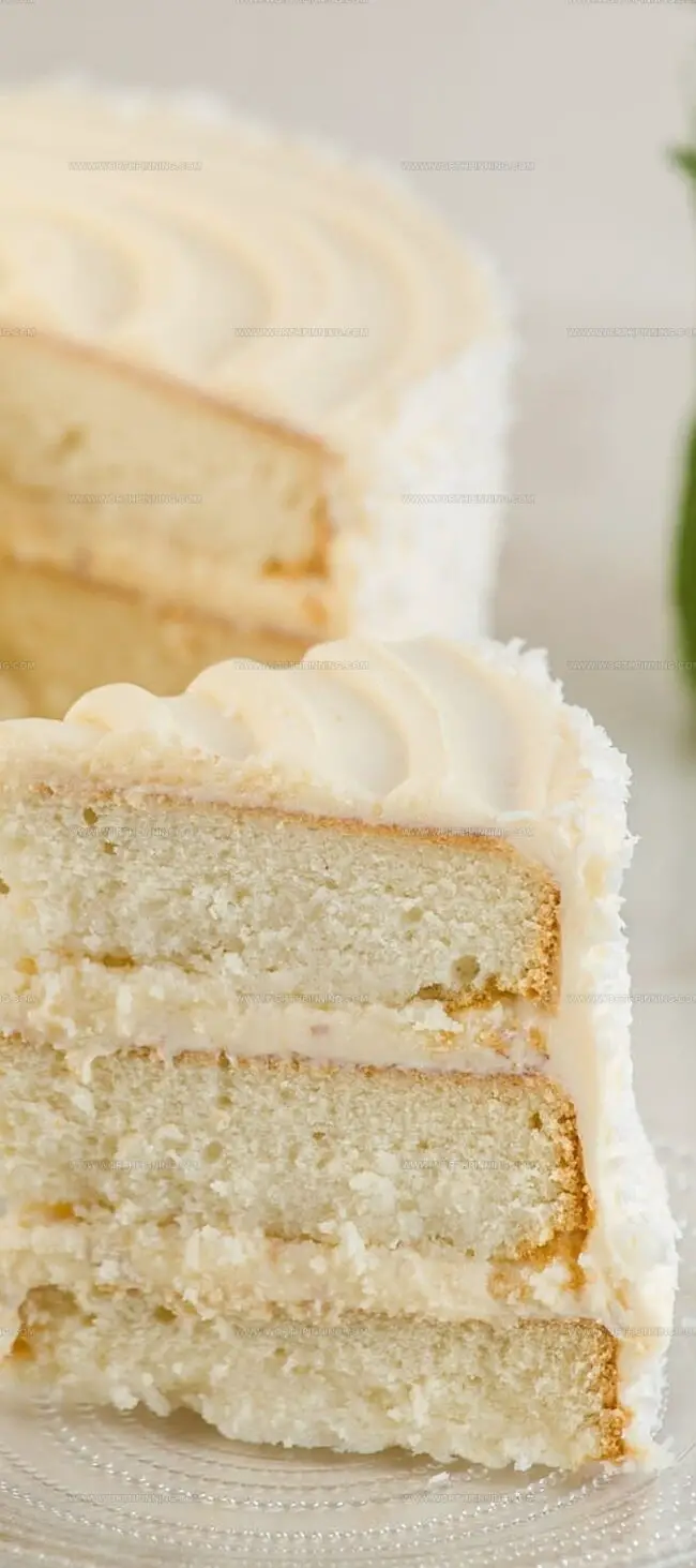Layers of tender cake showcase creamy coconut’s luxurious essence, creating a memorable culinary experience.