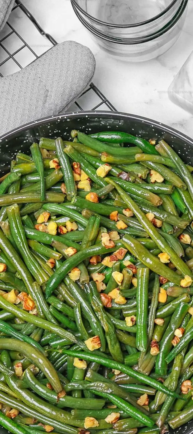 - Transfer aromatic green bean mixture to elegant serving vessel, garnishing with previously toasted almonds. Serve immediately while maintaining optimal temperature and texture.