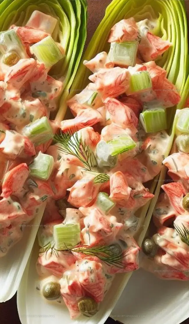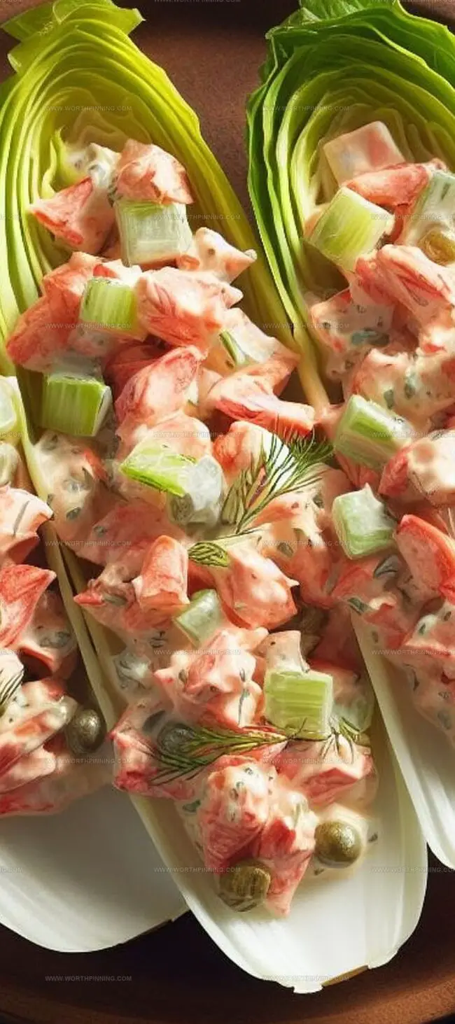 - Crisp Belgian endive leaves create an elegant edible platform that showcases the luxurious seafood filling.