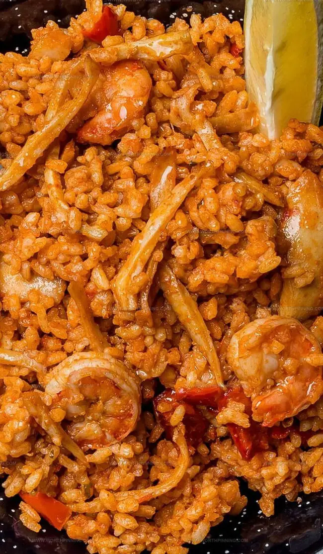 Complex layers of turmeric, saffron, and paprika intertwine with succulent shrimp, producing gastronomic poetry on plate surfaces.