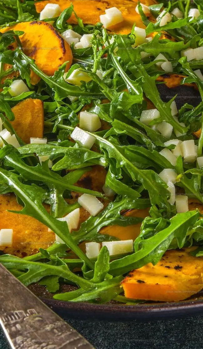 Sprinkle generously over the salad:Serve immediately to enjoy the crisp, vibrant flavors and maintain the arugula’s delicate texture.