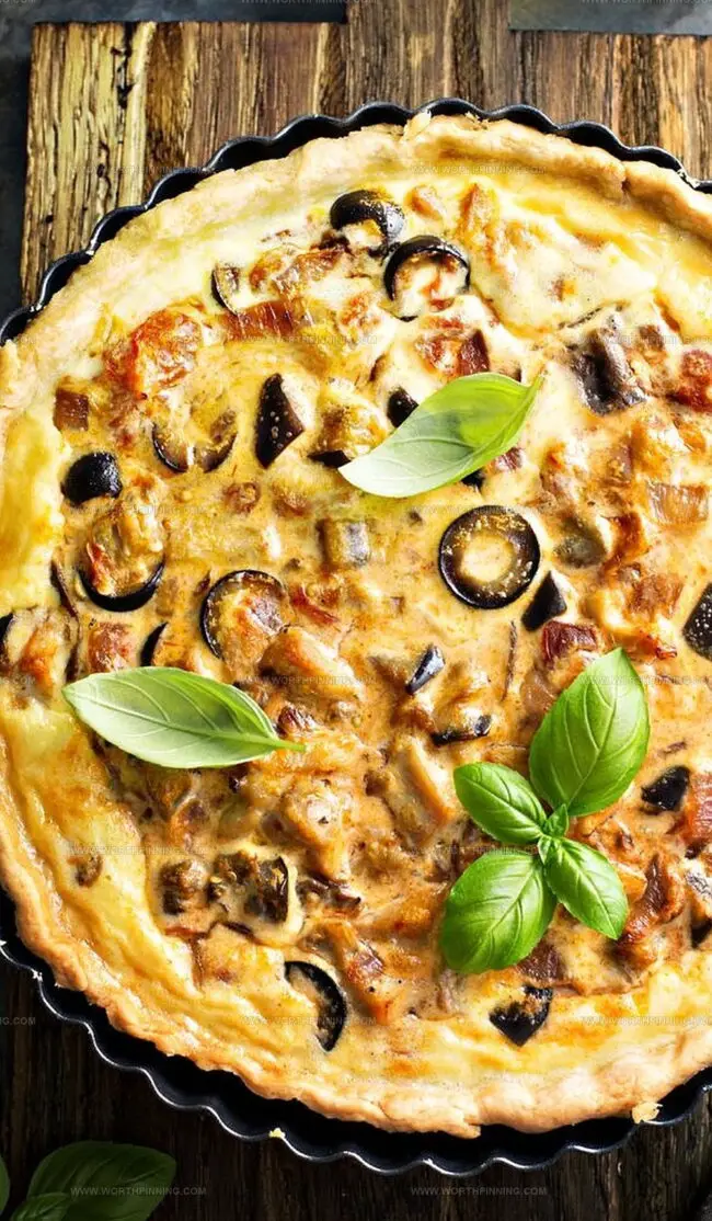 - Pour the aromatic filling into the pre-baked pastry base, ensuring even distribution.