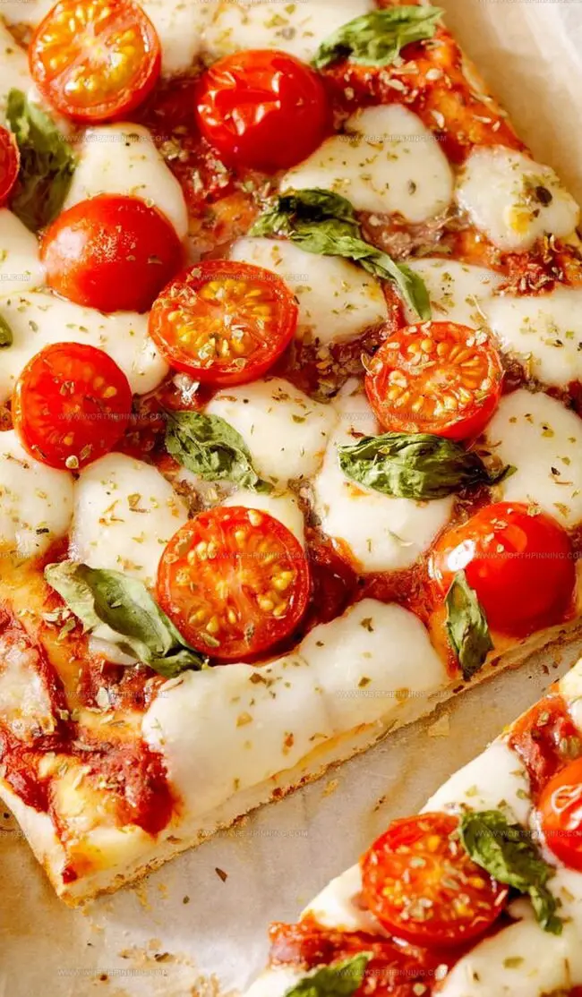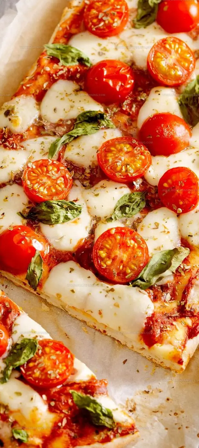 - Remove from the oven and garnish with fresh basil leaves, torn or chopped, to add a vibrant, aromatic finish.