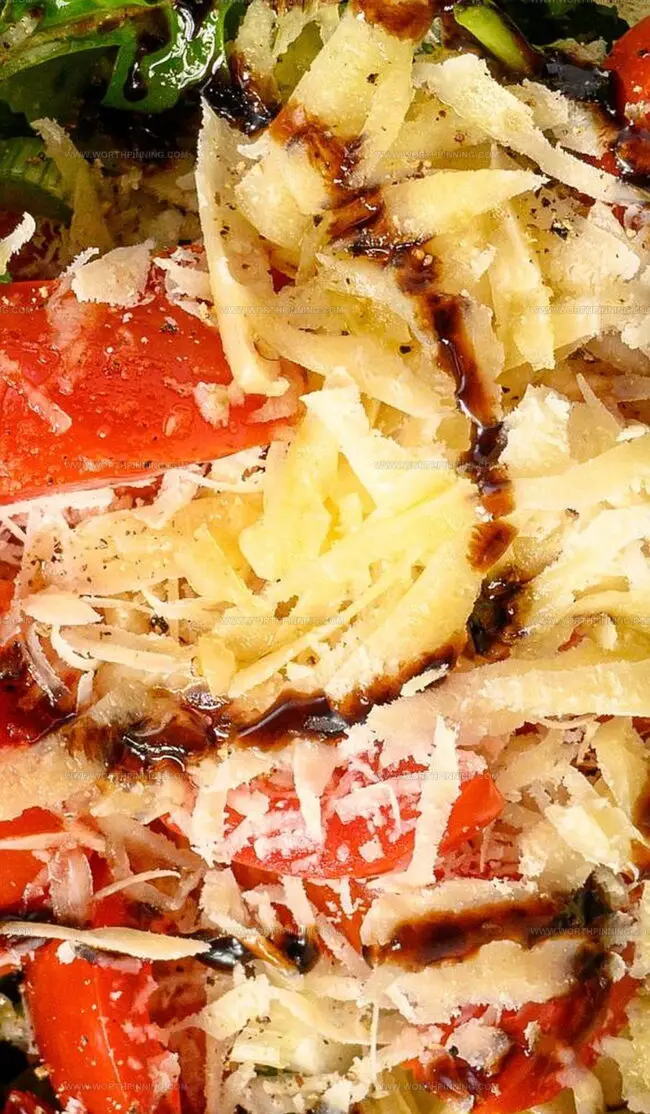 - Drizzle approximately three tablespoons (45 milliliters) of aged balsamic vinegar over the dish, allowing it to create a natural, glossy reduction when it mingles with the olive oil.