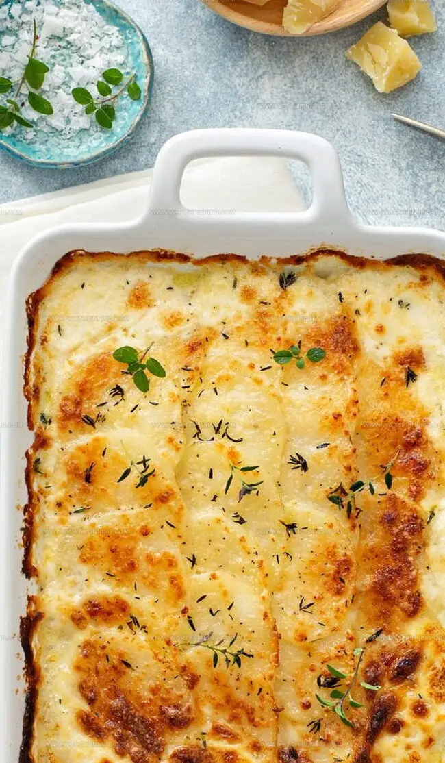 - Pat potato slices dry before layering to prevent excess moisture and achieve a crispy, golden top.