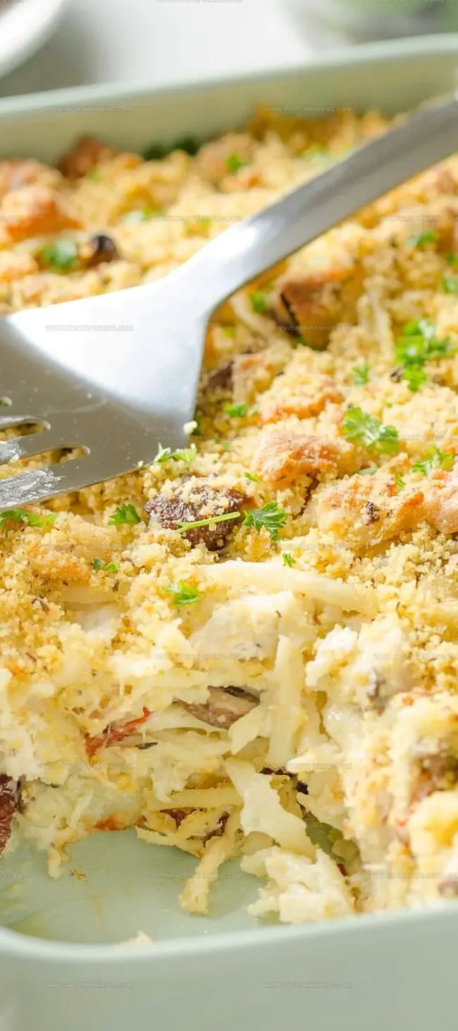 Mushroom-laden sauce creates luxurious depths beyond simple casserole expectations.