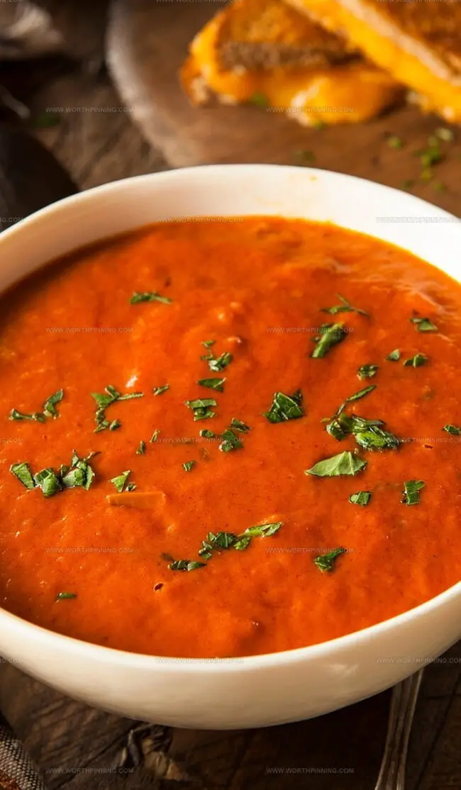 - Ladle steaming soup into serving bowls, embellishing with optional garnishes like fresh cream, chopped basil leaves, crunchy croutons, or delicately grated Parmesan cheese.