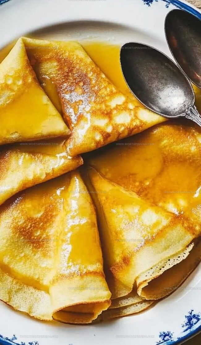 - Transfer the finished crêpes to a serving platter, drizzling any remaining sauce over the top for additional flavor and presentation.