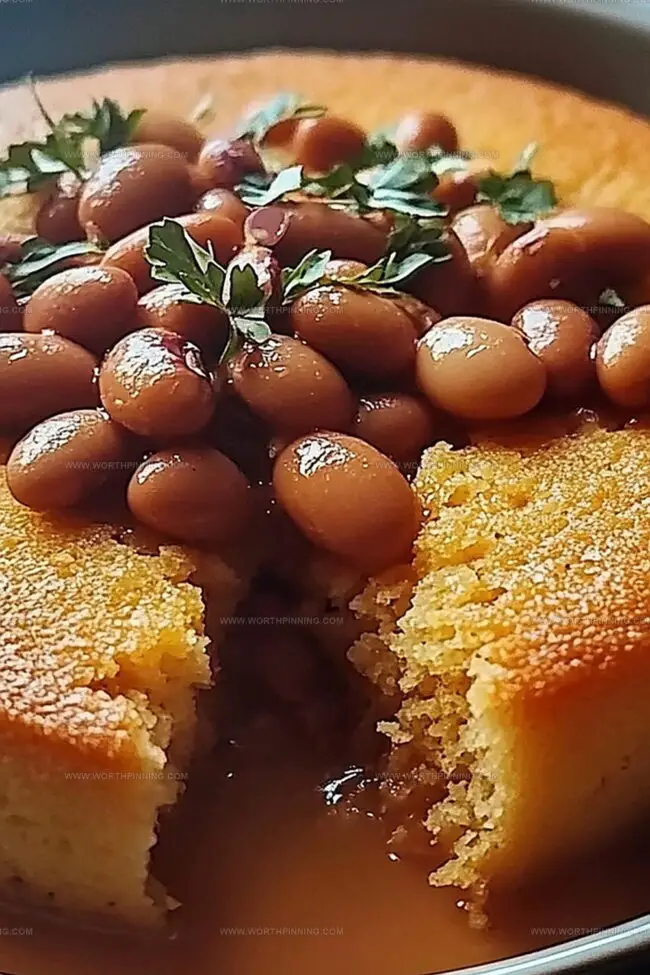 Dish up warm beans in a bowl or plate. Place cornbread on the side. Jazz it up with hot sauce, sliced green onions, or fresh greens if you’re feeling adventurous!