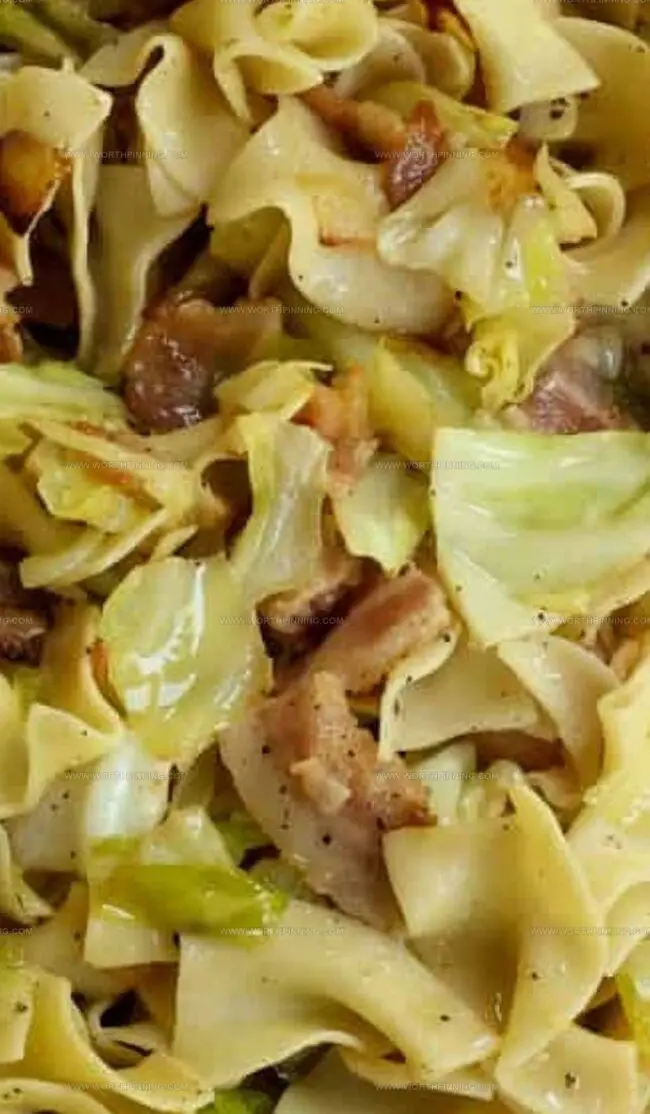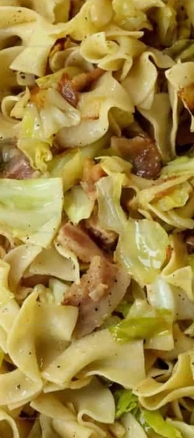 Creamy butter-kissed noodles mingle with caramelized onions and tender cabbage, creating nostalgic harmony on each forkful.