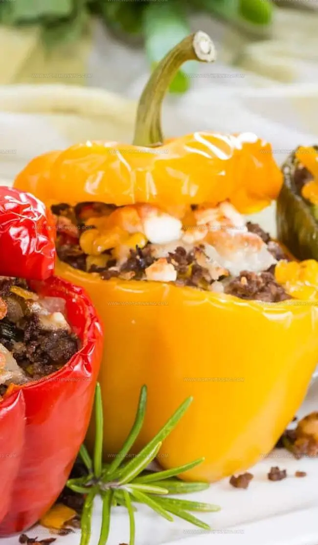 Colorful bell peppers cradle a savory mixture that promises pure comfort and excitement.