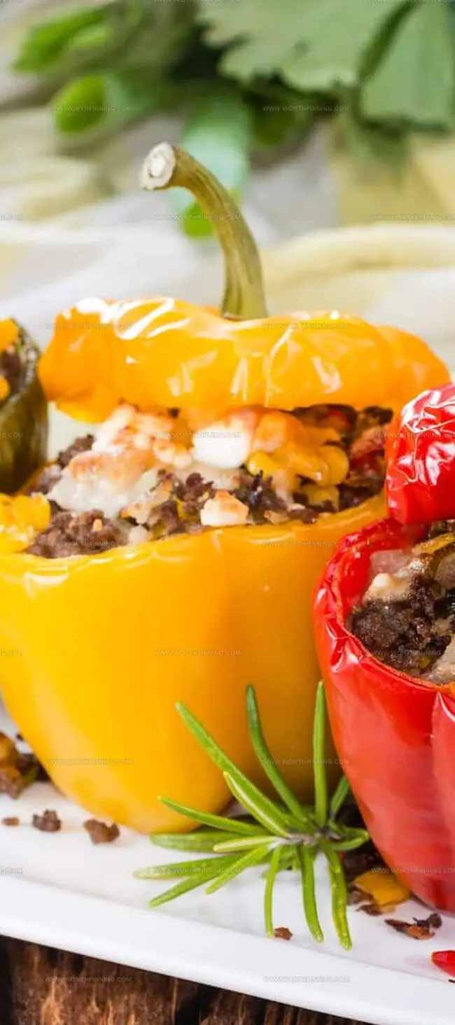 Plate these gorgeous stuffed peppers and watch everyone’s eyes light up with anticipation. Dig in and enjoy a meal that’s both comforting and exciting!
