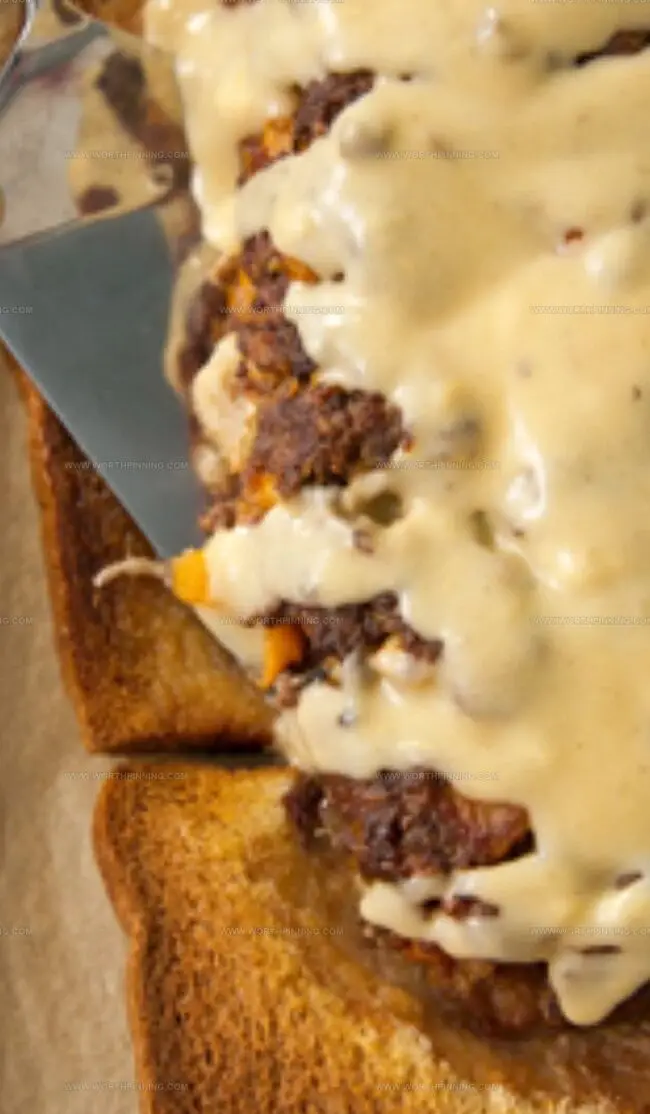 - Slice the meatloaf with precision, plate with the velvety warm sauce, and optionally embellish with finely chopped onions and fresh parsley. Present additional sauce separately for diners to customize their serving.