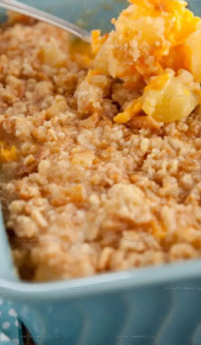 - Sharp cheddar cheese delivers a bold, tangy punch that perfectly complements the sweet pineapple chunks in this casserole.