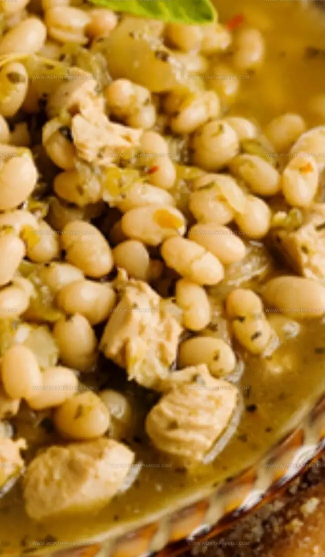 Soft white beans mingle with succulent chicken, creating a harmonious texture that feels simultaneously rustic and refined.