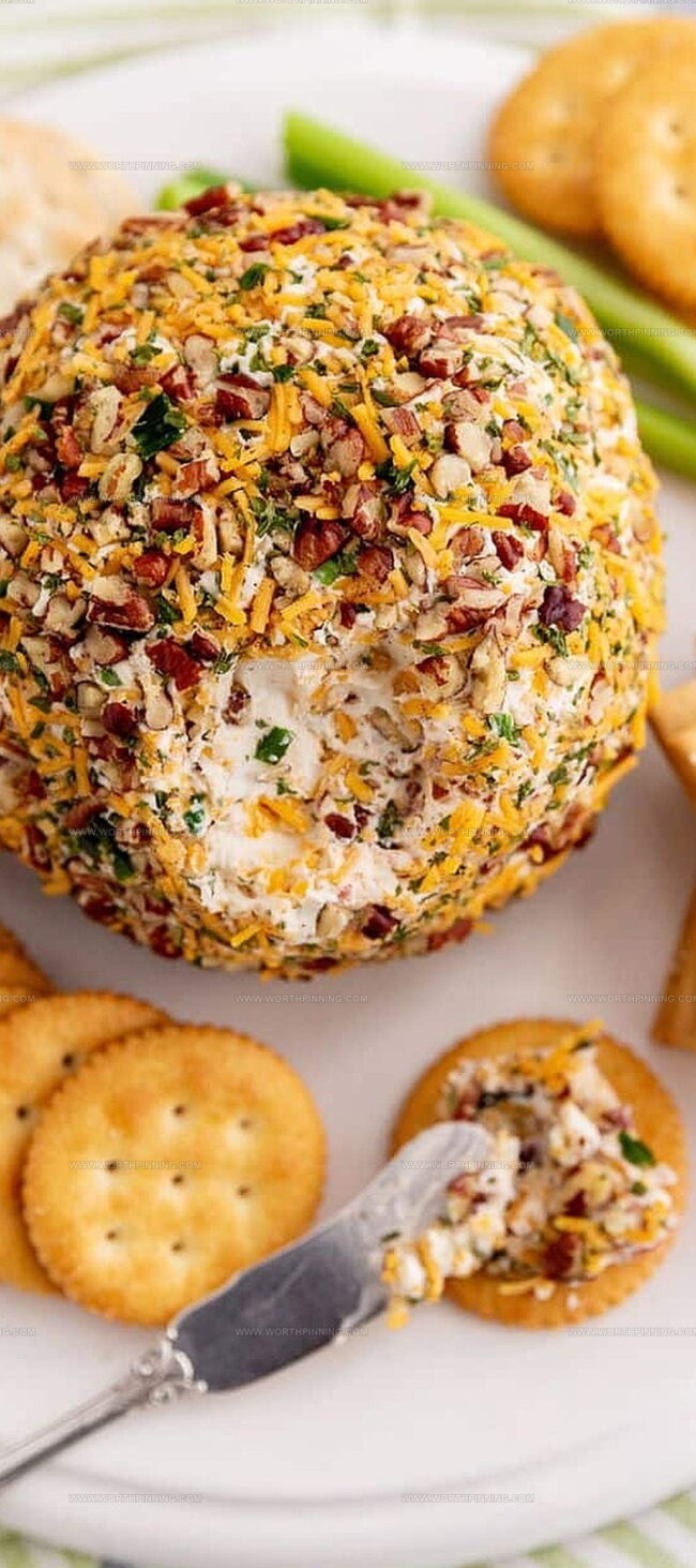- Prior to serving, remove the cheese ball from the refrigerator 30 minutes in advance, allowing it to reach a slightly softened consistency. Present alongside an assortment of crackers for an enticing appetizer experience.