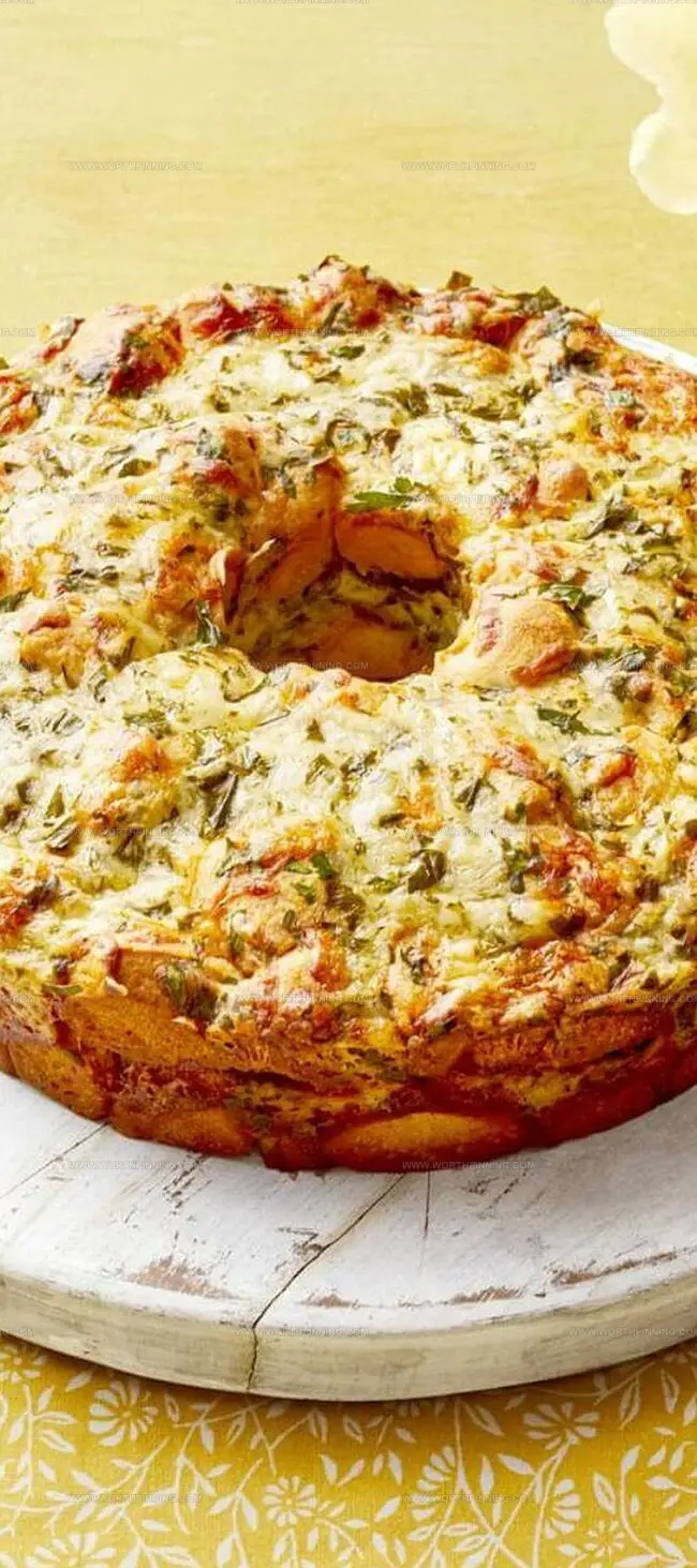 Let the bread rest in the pan for 10-15 minutes on a cooling rack. Carefully flip onto a cutting board, revealing the cheese-topped masterpiece. Serve warm and enjoy pulling apart each gooey, flavor-packed bite.